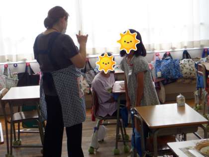 栄養士さんも残っていただき、子供たちと給食についていろいろとお話をしていただいています。