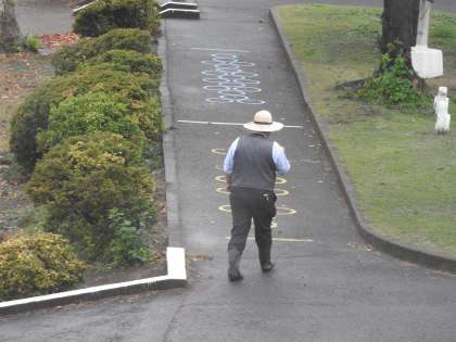 なかよし学級の男の子が、家庭学習でがんばったノートやドリルを見せに来てくれました。お家の方や先生方から教えていただいたメモもしっかり保管できています。 「あれっ? 妹さんも一緒にお勉強したのですね。」「そうです。妹は最近、自分で立つことができるようになりました。」嬉しそうに報告してくれました。 あと少しで、6冊目のノートが終わります。ノートが終わったら、また見せに来てね。 雨の降る校庭で教頭先生が安全点検をしてくださっていました。 鶴二小の校庭環境を守るために、雨の日の浸透マスの点検はとても大切です。 ありがとうございます!