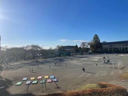 今朝の校庭には、100人以上の子ども達が校庭を気持ちよさそうに走っていました。