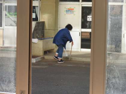 若い教員時代からの習慣で、子どもたちの下駄箱を観察しています。 昇降口の掲示板に「鶴二小祭り」の出し物のポスターが掲示されていました。 鶴二小では、1年生から6年生までの子どもたちが12の干支(えと)のチームに分かれ、お祭りの出し物を決めて、計画・準備・当日の運営を子どもたちが主体となって行います。 今から「鶴二小祭り」が楽しみです! みなさんも、ふるってご来校ください。 支え合い協議会さん(学校応援団コーディネーター&読み聞かせミントさん&……。色々な場面で大変お世話になっています。)が、南校舎の前のそうじをしてくださっていました。