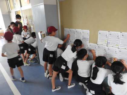 「校長先生。おはようございます! 今日は〇周走る目標です!」「おはようございます! 私は〇周です!」 子どもたちが自分で立てた目標を伝えてくれました。 校長の実験の成果が一日にして出ていることに喜びを感じました。 校舎に戻り、手洗いうがいを済ませると、子どもたちは走った周の数を記録します。 健康でたくましいココロと身体を子どもたちゃ先生方と一緒に育んでいきたいと考えます。