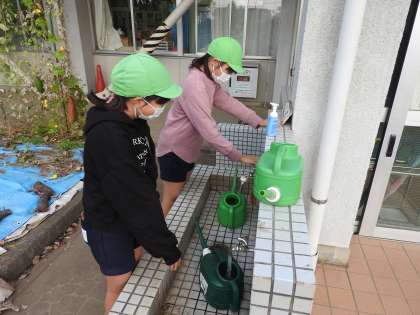 「行く(やる)ときは一緒!」鶴二小の先生方の組織的対応の合言葉です。先生方はもちろん、保護者、地域の方々、子どもたちも一緒でありたいと校長は願っています。 鶴二小の朝は、子どもたちの植物への水やり、校務員さん、学校応援団さん、地域の皆さんのおそうじの音で始まります。 あれっ? 今日はお仕事があって、スクールガードをお休みになるとおっしゃっていた学校応援団さんが、校外の落ち葉掃きをしてくださっていました。 「仕事まで時間があるから、ぎりぎりまで掃除するよ!」 本当にありがとうございます! 本当にありがたいことですねと教頭先生と顔を見合わせました。