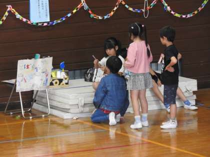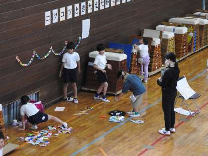 リトルリーダー2年生が、かわいいかわいい1年生のために、たくさんのおもちゃを手作りして、楽しませてあげていました。 子どもたちの交流のじゃまをしないように、2階のフロアーから画像を撮影しました。 2年生から1年生へ「優しさのバトン」が今日も継承されていきました。