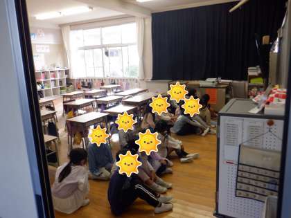 準備に向かう前、トップリーダーの6年生を待っている1年生です。
