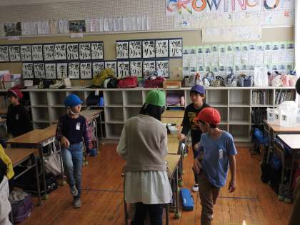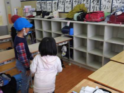 たくさんの保護者&地域の皆さんと一緒に未来の鶴二っ子たちも鶴二小祭りにきてくれました。 妹さんや弟さんも鶴二小祭りを楽しんでいました。 低学年用のライン、中学年用のライン、高学年用のラインと学年ブロックで立つ位置が違っていましたが、子どもたちが機転を利かして、「未来の鶴二っ子特別ライン」を急きょ作って、未来の鶴二っ子たちを楽しませていました。 本当にココロの優しい鶴二っ子たちに、ココロがほっこりしました。 「次は、どこをまわりたい?」 6年生の男の子が下級生の子どもたちに優しく聞いていました。