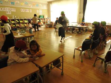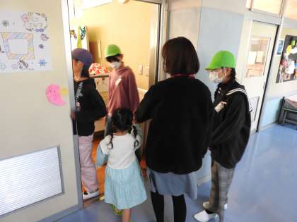 鶴二っ子たちからよく「お姉さん自慢」「お兄さん自慢」を聞きます。 子どもたちからの自慢話はいつも聞いていてココロが温かくなります。 鶴二っ子たちは「未来の鶴二っ子たち」を楽しませようと優しく語り掛けます。 未来の鶴二っ子が遊びではなく、受付をしているお姉ちゃんの横にすわって受付のお手伝いをしていました。