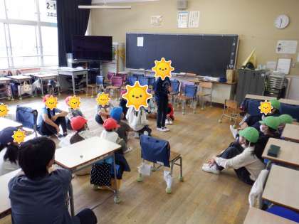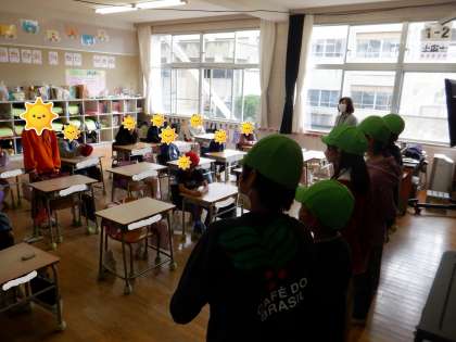 班員さんが感想を発表したり、トップリーダーの6年生から班員に話をしたり、担当の先生からねぎらいの言葉をもらったりしています。