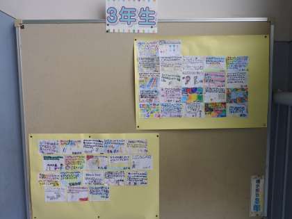 3年生の学年掲示板に鶴二小祭りの「見通し(めあて・目標)」に関する掲示物が掲示されていました。 本日のような学校公開日の日に保護者の方々が「あっ! うちの子のがあった!」とお子さんの作品をうれしそうに鑑賞している様子を見ていると、ココロがほっこりします。 本日も「鶴二小祭り」にご来校くださりありがとうございました!