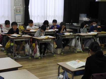 校長が、まだ若い教員だった頃、先輩の先生方から「大きな行事の終わった後が、今後の学級経営において重要である」ということを教えていただいたことを思い出しました。 5時間目の鶴二っ子たちの授業に臨む様子を観察に行きました。 リトルリーダー2年生の授業風景です。 先生が教科書を音読しています。 子どもたちは先生の音読の声を聴きながら、教科書を黙読していました。 大きな行事の後の気持ちの切り替えと集中力。とてもすばらしかったです。 さて、次の行事の目標は?