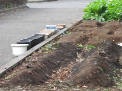 正門を入ったところに、お客様を温かく迎えてくれる美しい花々。学級菜園の「さつまいも」の収穫まじか。鉢には「菜の花」でしょうか? いつも鶴二っ子たちのために、「美しい汗」を流してくださりありがとうございます。