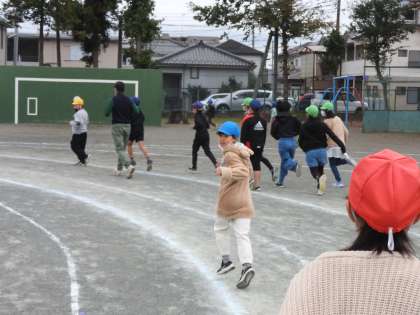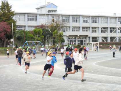 業間休みになりました。 子どもたちと先生方と一緒に、自分のペースで、目標を決めて走ります。 私は、中学年のコースを1日10周走ることを目標にしています。 中学年のコースを走っていると、全てのブロックの子どもたちとお話しできるからです。 休み時間、ずっと走っている子どももいれば、目標が達成できると、遊具で遊ぶ子どももいたりと、子どもたちの元気が校庭にあふれます。 ヤオコーさんに買い物にいらした地域の方々も足を止め、「がんばれ! がんばれ!」と子どもたちを温かく応援してくださいます。