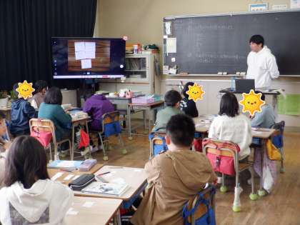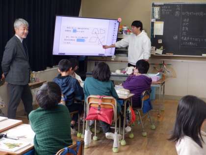 自然にICT機器を活用して教材の提示を行う先生と、子供たちも自然にモニターを見ている姿に、これからの教育の日常を感じました。
