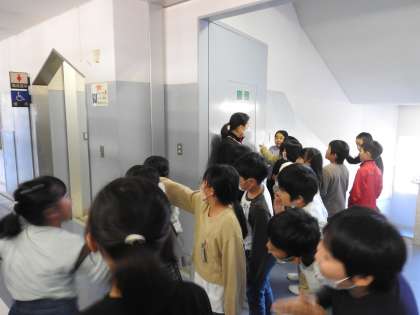 3年生の子どもたちが担任の先生と鶴二小の中にある「防災に関する設備」探しをしていました。 これが、非常時のベルや放送システム。これが、消火栓。これが、AED。…… 「校長先生。避難誘導灯はどこでしょうか?」 「もしかしたら……。」 結局、授業中に発見することはできませんでした。 教頭先生、レジェンド先生、教務主任の先生、スクールサポートスタッフの先生、学級運営補助員の先生と一緒に探すとぉ……。
