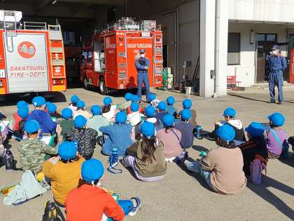 消防署見学が始まりました。 今日はなんと署長さん直々にお話をいただいています。