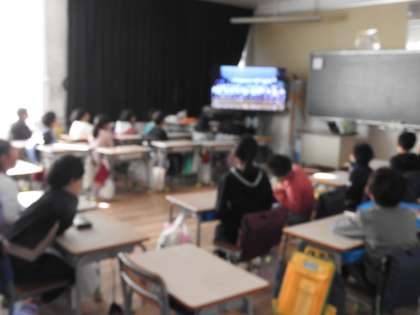 先日、残念ながら中止になってしまった市内音楽祭。出場するはずだった4年生のすばらしい歌声を教室に届けます。 保護者の皆さまには、服装の面でも支援していただきありがとうございました。 教育センターのレジェンド先生も「鶴二小の子どもたちも、本当にお話を聴く態度が素晴らしいですね。」とニコニコ笑顔でほめてくださいました。 4年生の合唱動画の視聴が終わると、教室ごとに、今月の歌を合唱しました。 校長室まで、子どもたちの歌声が届きました。