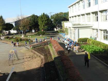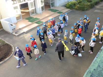 3年生の子どもたちが水筒をぶらさげて昇降口の前に静かに整列していました。 南校舎の昇降口の天井の雨水排水溝の落ち葉を取り除くついでに、こっそり、屋根の上から見守っていました。 私の気配に気付いた子どもが小さな声で「あっ! 校長先生だ。」とつぶやいたので、「シィ〜!」ポーズをして、見つからなように隠れました。 出発する前に、先生から3つの目標が伝えられました。 3人の先生(学年の先生と教頭先生)に寄りそわれ、校外学習へ出発しました!
