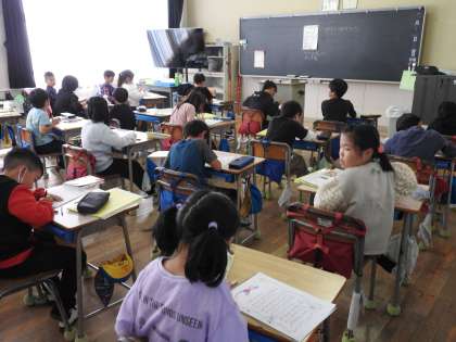 先生がいなくても しっかり自習ができる鶴二っ子たち