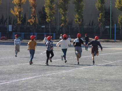 2時間目終了のチャイムが鳴ると、子どもたちが校庭に飛び出してきました。「校長先生の目標は何周ですか?」 「業前休みに7周できたから、3周以上がんばりたいですね。」 子どもたち(校長介護係の子どもたちに寄りそわれながら)と走り始めると、1年生の女の子たちが走り寄ってきました。 「どうしましたか?」「お友達がお腹がいたいとあそこでうずくまっています。」女の子たちが指さす方向を見ると、男の子がお腹をおさえてうずくまっていました。 「今日は、保健室の先生はお休みだから、職員室の教頭先生のところへ連れて行ってもらえますか?」「はい。」 とっても優しい1年生たちです。 鶴二小の伝統の一つである「優しさのバトン」が確実に継承されています。