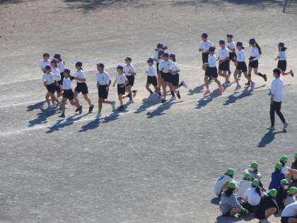 鶴二小次期リーダー5年生女子が持久走大会の試走会にチャレンジしていました。先生方も、それぞれの役割に分かれて、子どもたちを励ましながら支援していました。24日に鶴二小での教育実習を修了する保健室の未来先生も、折り返し地点に立って、子どもたちを温かく見守ってくださいました。 私も、鶴二小のある場所から「がんばれ! がんばれ!光線」を子どもたちにビ・ビ・ビィ〜と贈り続けました。 ここの場所なら、全体が見渡せ、子どもたちと先生方を見守ることができます。 さて、問題。校長先生はどこから子どもたちを応援しているでしょうか?