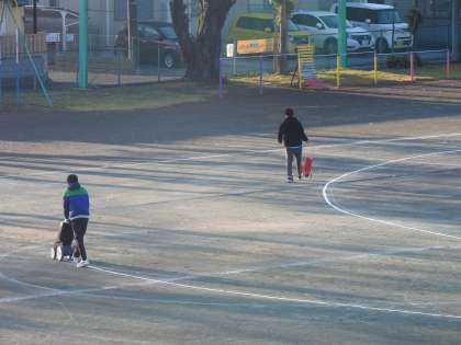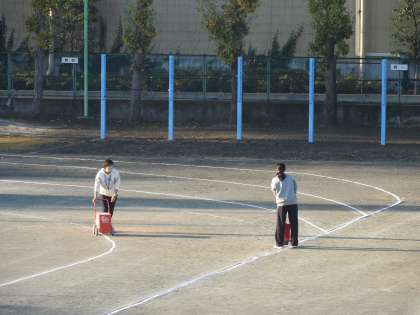 今朝は、午前中にお客様が来校なされる予定なので、鶴二小で子どもたちを迎え入れました。 「校長先生。おはようございます! 今日も一緒に走りましょう!」 私の服装を見て、子どもたちがそう言ってくれました。 子どもたちが登校してくるかたわらで先生方が、協力して校庭にラインを引いてくださっていました。 月曜日の朝から働きものの鶴二小の先生方です。