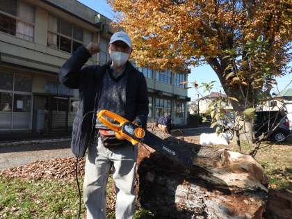 学校応援団さんから、電気式チェーンソウをご寄付いただきました。 鶴二小のアイテムとして大切に大切に使わせていただきます。 いつもありがとうございます!