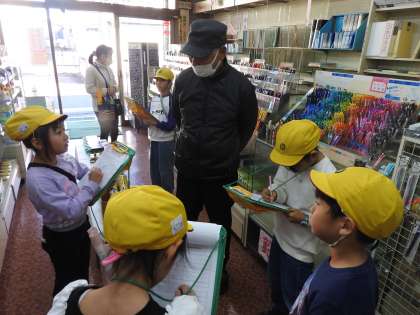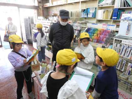 鶴二小に赴任し来た時に、ボールペンを購入させていただいた文房具のわたぬきさん。 子どもたちの質問に一つ一つ丁寧に分かりやすく答えてくださっていました。 「わぁ。なつかしい。この鉛筆。小学生の時におばあちゃんに買ってもらったものと一緒です!」「クーピーは、一色から購入できるんですね。」「このノリ便利なんですよね。」 子どもたちと、たくさんの文房具を見せていただきました。 お店の名前の由来。最近、小学生によく売れた文房具。(残り1つでした。インタビューした子が小さな声でこっそり「校長先生。今日、帰ったらお家の人に相談して、買いに来ようと思います。」と言っていました。)お店のポップやステンシルは店主さんが全て独学で勉強し製作しているとのことでした。 子どもたちのためにありがとうございました。 インターネットで物を購入できる時代ですが、一つ一つ手に取って、お店の方に説明を受けてから購入することも楽しいことであると再認識できました。