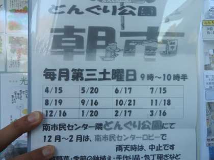 どんぐり公園朝市 16日(土)9:00〜10:30 南市民センターロビー