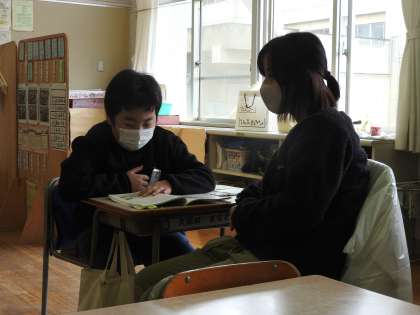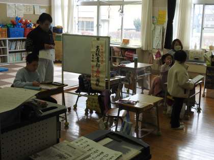 なかよし学級の廊下を歩いていると、中から子どたちの声が聴こえてきました。 教室をのぞき込むと、女の子が長い詩の暗唱を。男の子が教科書の音読をしていました。 隣の教室に移動すると、子どもたちがそれぞれの学習に真剣に向き合っていました。 先生方が、一人一人の子どもたちのがんばりを支援したくさん褒めてくださっていました。