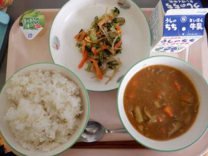 今日は、子どもたちが大好きなカレーです。給食の人気メニューの定番