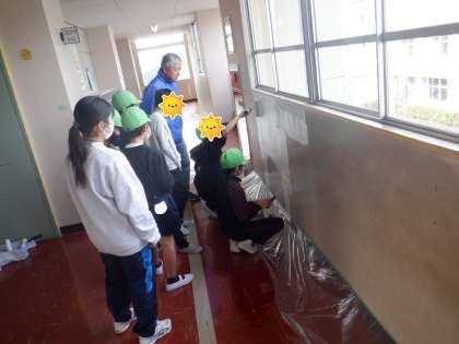 このグループは南校舎のペンキ塗りをやってくれる模様です。