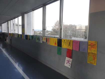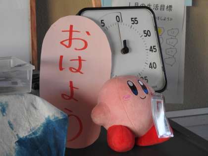 教室巡りの時に、次期リーダー5年生の教室の廊下に「動きの不思議」という子どもたちの掲示物が掲示されているのを発見しました。 人間の体の動きを紙の上で表現しようと試行錯誤している子どもたちの姿が思い浮かびました。 教室では、カービーが「おはよう」と優しく迎えてくれました。