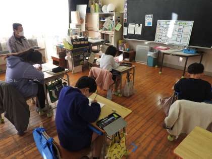 なかよし学級の子どもたちが集中して記録をしています。 東側の昇降口の「学校はたのしいなの掲示物」を鑑賞しながら、整った下駄箱のくつを見て、ココロが整います。 校長室に戻ると、鶴二小トップリーダー6年生がやってきて、素晴らしい報告をしてくれました。 1月17日(水)の埼玉新聞の埼玉スポーツ欄にサッカーの試合で活躍して名前が掲載されたというのです。「素晴らしいですね。早速、みなさんに報告しましょう。鶴二小の誇りですね!」