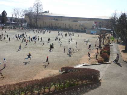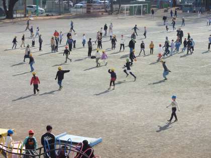 昼休みになりました。 特別活動主任の先生が「縦割り遊び」に関する放送アナウンスを流すと、子どもたちと先生方が校庭に集まってきました。 縦割り遊びには絶好のお天気です。 上級生が下級生のことを考えて思いやりある行動をしている場面をたくさん発見することができました。 異学年交流授業の大切さを強く感じました。 写真の中から、子どもたちが大好きな教頭先生を探してみましょう!