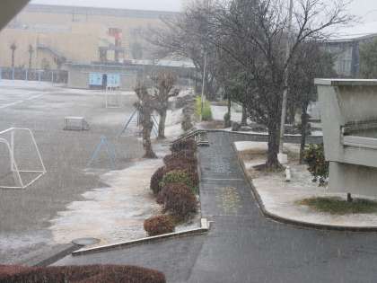 雪が降ってきました。 本日(5日)は予定通りの下校です。 明日(6日)も通常通りの登校でお願いします。