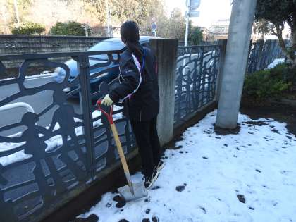 学級運営補助員の先生がスコップを抱えて、北校舎の裏にいらっしゃいました。お話をうかがうと、鶴二小の北側の歩道を歩く方々の安全のために、校務員さんと一緒に、路面の氷を割ってくださっていたようです。 希望進路の実現に向けて、中学3年生が動き出しています。藤中生と朝、あいさつを交わすたびに、藤中生の背中に「がんばれ! がんばれ光線」をビビビと贈り続けています!