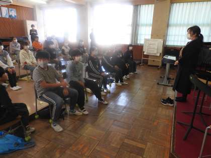 5年生の子どもたちと音楽のレジェンド先生が、南中学校の校長先生(鶴二小のホームページにも美しい海の中の写真を提供してくださいました。)を指導者にお迎えして、研究授業を行いました。 日本の伝統的な音楽に親しもうということで、「春の海」(宮城道雄)の鑑賞の授業でした。 市内の音楽科の先生方もたくさんおいでになりました。