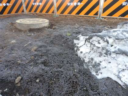 登校見守りで学区内を歩いていると、鶴二小のホームページをご覧になられた地域の方が、こっそり教えてくださいました。 「校長先生。ここの霜柱も強そうですよ!」「あっ! 確かに強そうですねぇ!」 子どもたちと校長の「霜柱対決」に強力な助っ人が登場しました。 しかし、子どもたちとのルール上、「鶴二小の校地内の霜柱で勝負する」というしばりがありまして……。 しかし、鶴二小のホームページがきっかけとなって、地域の方々と「子どもたちの鋭い観察眼」を共有できる幸福感を味わわせていただきましたこと、心より感謝申し上げます。 (株)関水さんの工場(公園)も完成間近です。