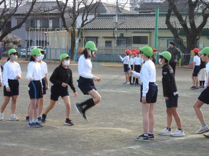 学校生活の様々な場面で、子どもたちや先生方から意見や考えを聞くときに、その理由を答えてもらうように心がけています。 1回目の計測が終わり、クラスごとに作戦を話し合い2回目にチャレンジします。