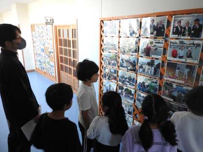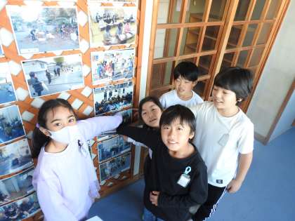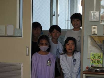 1時間目が始まってすこしたったころ、校長室の扉がノックされました。「はい、どうぞ!」 「失礼します。」3年生の子どもたちが校長室に入ってきました。 「どうしましたか?」「校長先生。和室の廊下にある学校応援団さんのお写真を授業で使いたいので、貸していただけませんか?」「あなた方は、いつも敬語が上手ですね。どれどれ、一緒に行きましょう。」 お話を聴くと、子どもたちが「鶴二小自慢」を授業で発表するということでした。 スクールガードさんと校長が作った掲示物が、授業に有効活用されることを喜んでいます。 「優しさのバトン」がぐるぐる良い循環をしています。