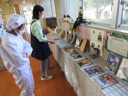 先日の埼玉新聞に「子どもたちの好きな図書」に関する記事がありました。 コピーして、図書室の先生や読み聞かせミントさんに渡しました。 早速、図書室の先生が、鶴二小の図書室の蔵書を調べてくださり、「校長先生。この記事にのっている本が鶴二小の図書室に全てありますので、特設コーナーを作りますね。」と本を並べてくださいました。 給食のコンテナ運搬のお仕事を終えた配膳員さんと、特設コーナーの見学をしました。 大好きな「南方熊楠(みなかたくまぐす)」の本も新しく入ったということなので、子どもたちと相談しながら、校長も借りたいと思います。 【楽しく学ぶための連鎖】をうまく起こせるのか楽しみです。 鶴二小の先生方や保護者・地域の方々は、校長が発信した情報を受け止め、子どもたちのために広く・深く教育活動に連鎖させてくださいます。 感謝・感謝・大感謝です。