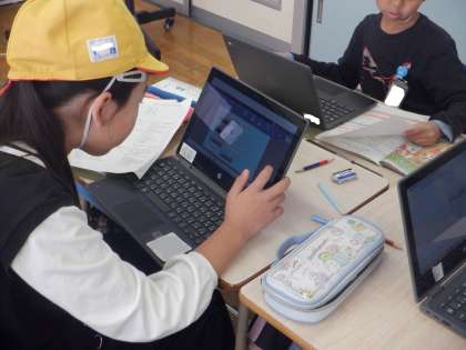 一方、4年生は隙間の時間にタブレットを使ってドリル学習をしていました。