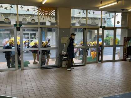 8時には、低学年昇降口のドアを開けて子どもたちを迎え入れてくれます。
