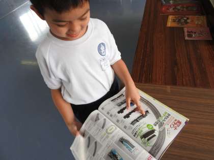 「どうしたら、子どもたちが思わず〇〇したくなってしまうのか?」 いつも頭の片隅において生活している疑問です。 「どうしたら、楽しみながら、子どもたちが情報収集したくなるのか?」 子どもたちが校長室に遊びに来てくれたので、実験台になってもらいました。 この間のほうれんそうのおひたしは5年生の子どもたちからの贈り物だったとうことを知ったので、お礼の気持ちを伝えました。 「この袋にはある食べ物が入っていました。何が入っていたでしょうか?」「この袋の材料は何でしょうか?」「この袋から分かる情報を教えてください。」 校長の実験はまだまだ続きます。 「校長先生。関水金属さんのところの線路には、この電車に似た電車が走るみたいですよ。」男の子がうれしそうに教えてくれました。