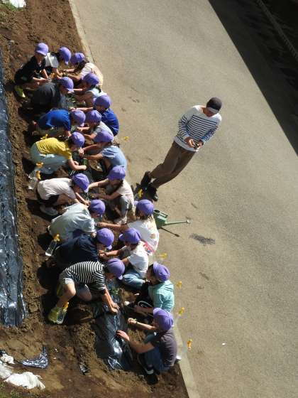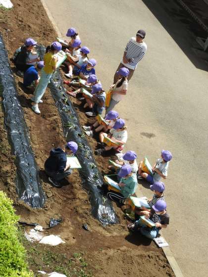 2年生の子どもたちが学年菜園に何かの苗を先生と植えています。先生が「みんなは苗植えの名人だね。優しく優しく植えてあげてね。」 子どもたちも「はい!」と返事をしながら、丁寧に優しく土をいじっています。 「次は。みんなは観察のプロです」 子どもたちをやる気にさせる先生の言葉がけ「〇〇の名人」や「〇〇のプロ」は、私たち大人も言われるとうれしくなりますね。