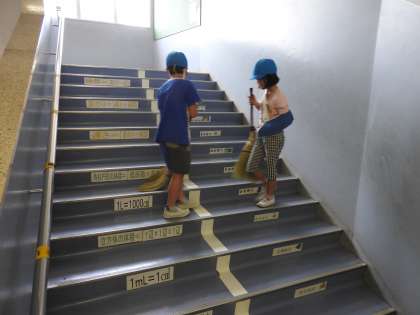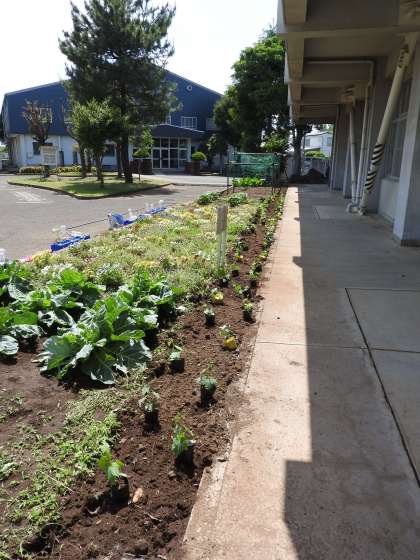 昼休みに「ヘチマプロジェクト」を始動するために、花壇に向かうと、4年生の子どもたちが階段をきれいにおそうじしてくれていました。 スクールサポートスタッフの先生が学校応援団さんと一緒に、土を作り、スコップをとじょうろを準備してくださっていました。 あとは、子どもたちの登場を待つだけです。 ドキドキ・ワクワク。