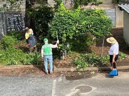 今日は校庭の北側を校務員さんや学校応援団さんが整備してくれていました。