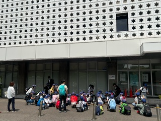 星型の窓のある科学技術館に到着しました。学習班に分かれて、見学が始まります。