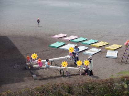 午前中、近くの保育所の皆さんが校庭の遊具遊びに来てくれました。