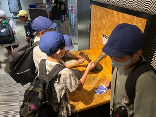 あたりまえのことかもしれませんが、世の中には知らないことがたくさんあふれています。子どもたちと心から新しい発見に驚き、学びを深めています。鶴ニっ子たちが、他の幼い子どもに順番を譲っていました。学校でも、学校の外でも、優しい優しい鶴ニっ子たちです。 みんなで協力して、力を合わせて、車のボンネットを持ち上げています。