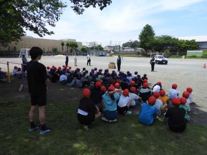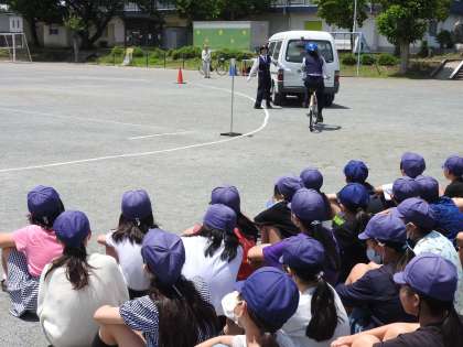 4時間目になりました。高学年の交通安全教室が始まりました。 高学年の子どもたちは特別に「模擬ハンドル」を貸していただきました。 流石、鶴二小トップリーダーと次期トップリーダーの高学年の子どもたちです。 一生懸命、真剣に取り組みます。